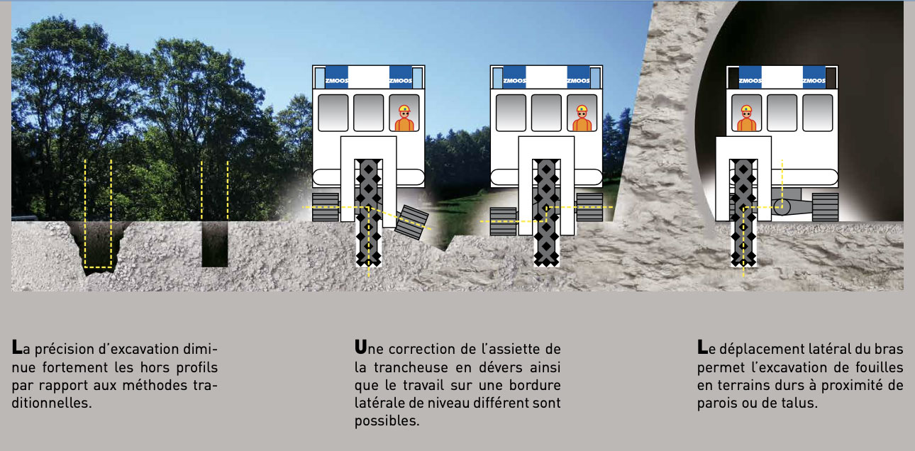 Nos trancheuses à roche sont mises à contribution pour l’excavation de fouilles quand l’efficience devient une priorité. Leur puissance permet d’obtenir d’excellents rendements pour l’abattage de roche, béton, ou divers revêtements.